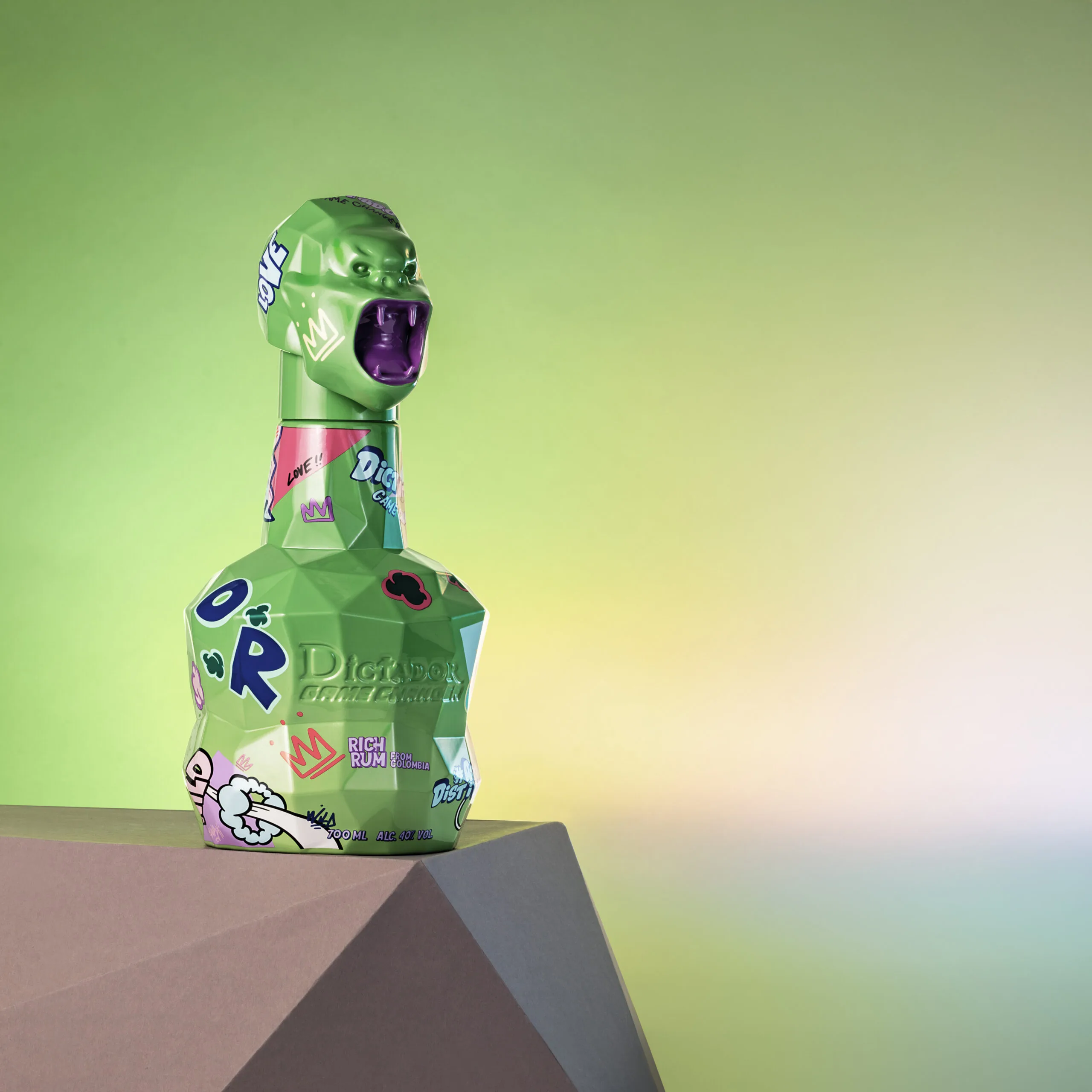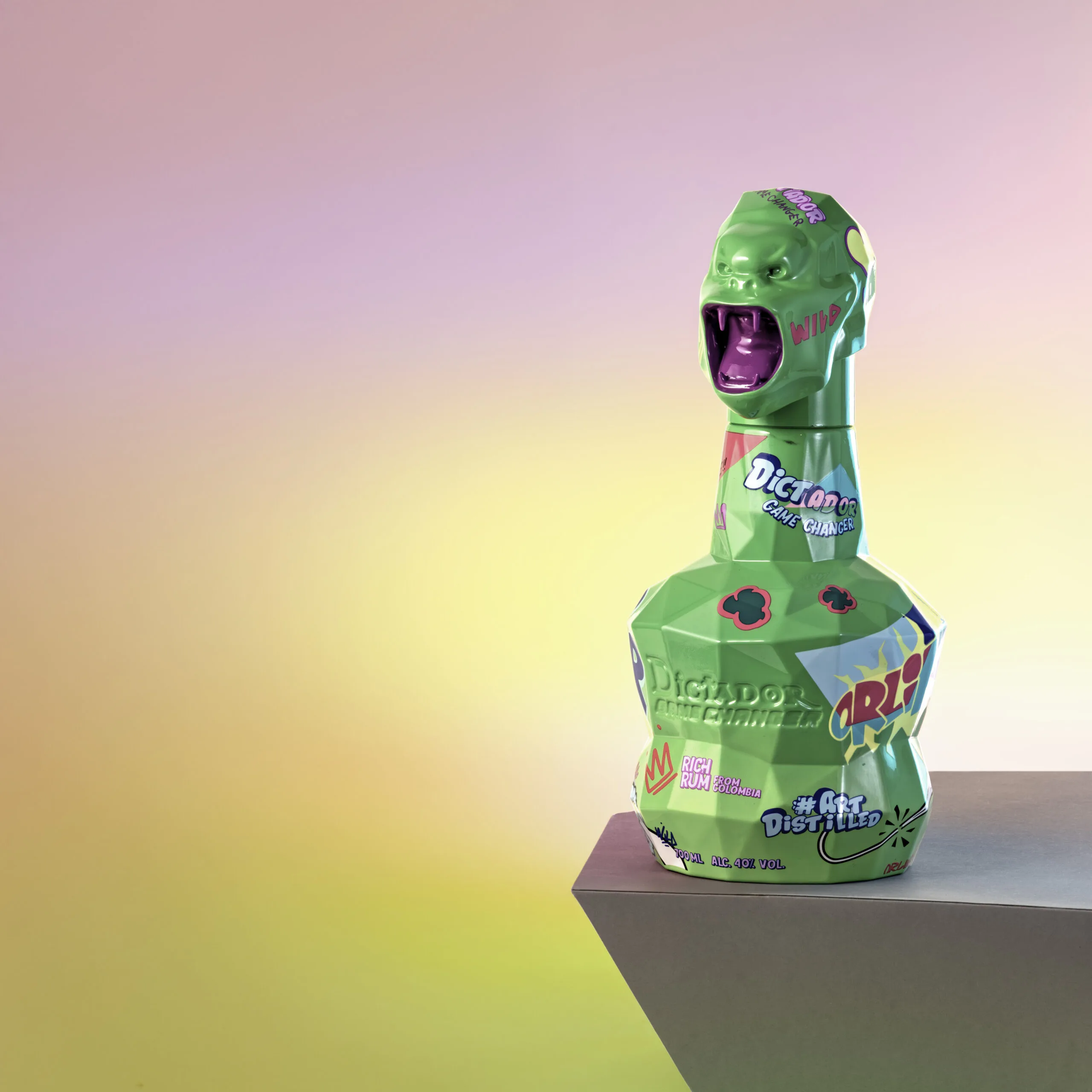 The Dictador Game Changer Light Greenย is more than just a bottle; itโs a bold fusion of heritage, innovation, and artistic vision. Born from a collaboration with the celebrated artist Richard Orlinski, this masterpiece symbolizes the convergence of two worldsโDictadorโs legacy of crafting exceptional rum and Orlinskiโs renowned contemporary artistry. The light green design, paired with the signature Kong-head cork, reflects a shared passion for breaking boundaries and redefining luxury. Each bottle encapsulates Dictadorโs commitment to craftsmanship, drawing from the Parra familyโs reserve of fine-aged rum, and Orlinskiโs dynamic energy, making it a true game changer for collectors and connoisseurs alike.