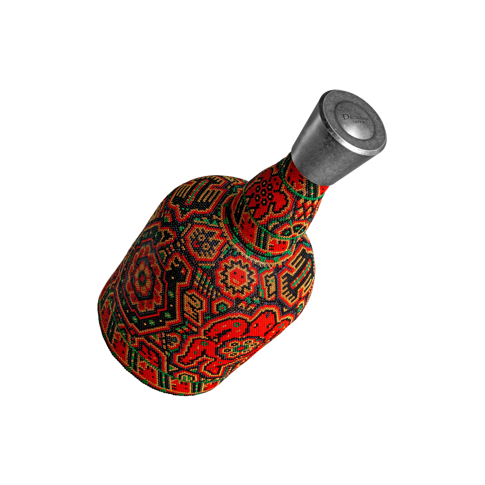 Only 702 bottles have been created, each meticulously hand-decorated with intricate beads. The collection features 20 unique designs, incorporating different local colors and patterns, ensuring that no two bottles are identical. Every detail reflects the rich heritage of the Huichol people, transforming each bottle into an unparalleled masterpiece.